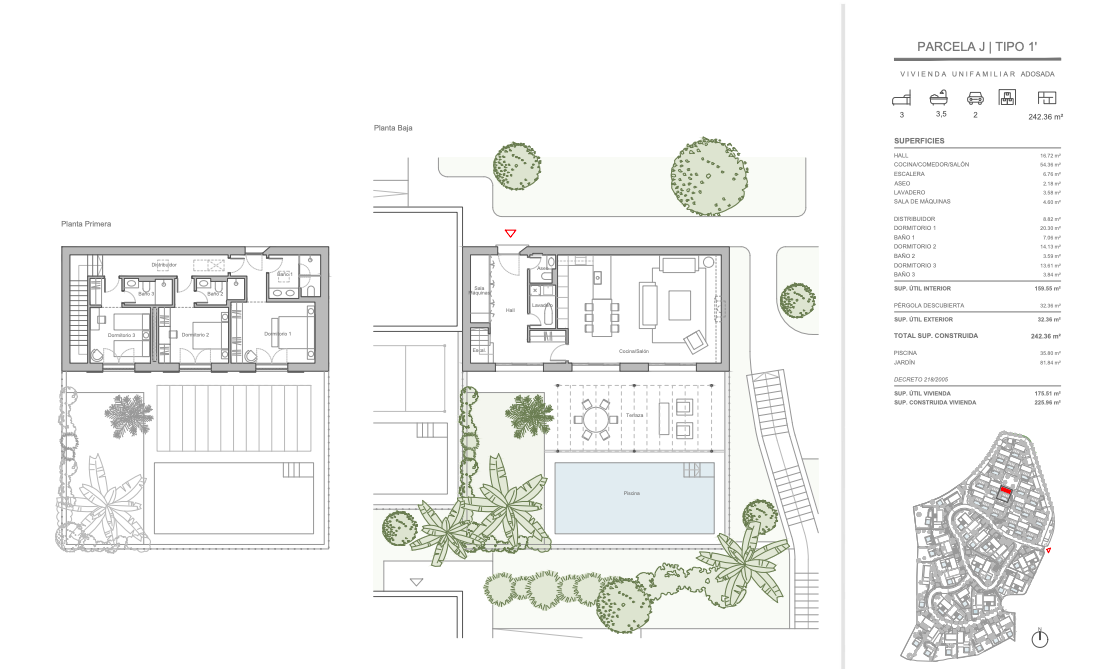 En esta ocasión, queremos destacar la Casa Patio, un espectacular adosado de 242 m² que combina diseño contemporáneo, elegancia mediterránea y las más altas calidades de construcción.