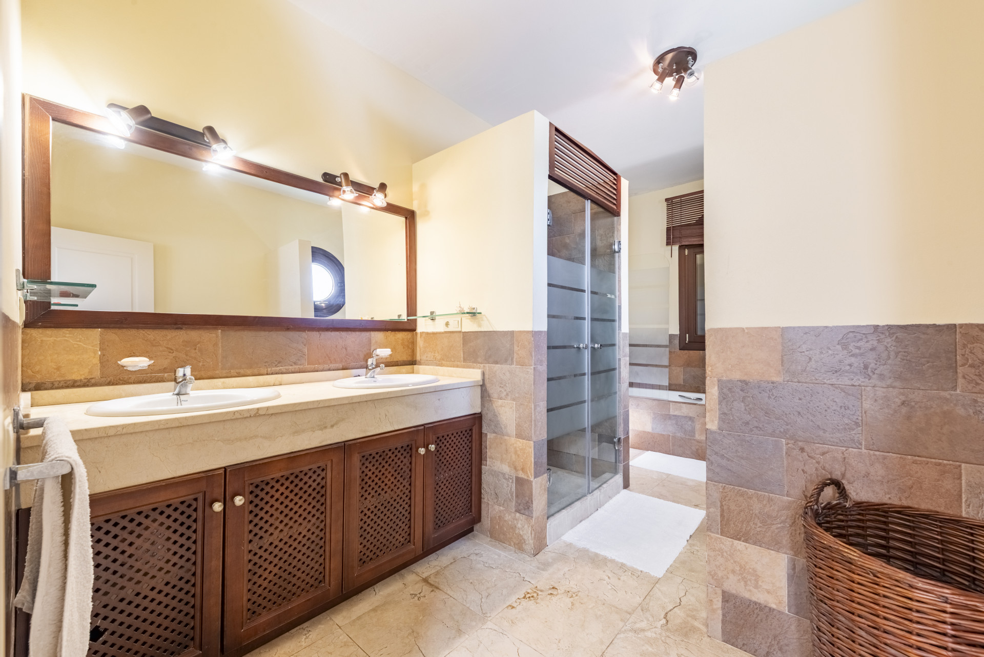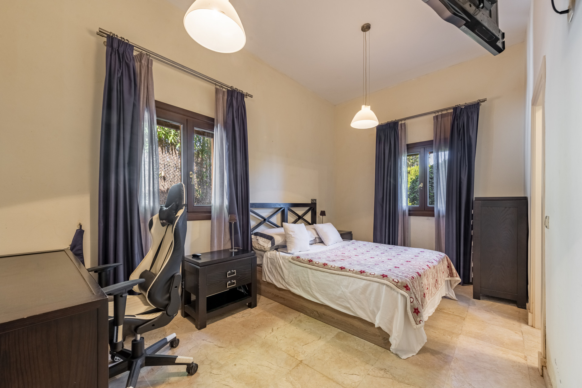 Esta villa tradicional combina a la perfección arquitectura clásica con materiales de primera calidad. Sus elegantes suelos de mármol, los espacios amplios, la luminosidad natural y la sensación de privacidad absoluta convierten esta propiedad en una opción incomparable dentro de Altos de Valderrama.